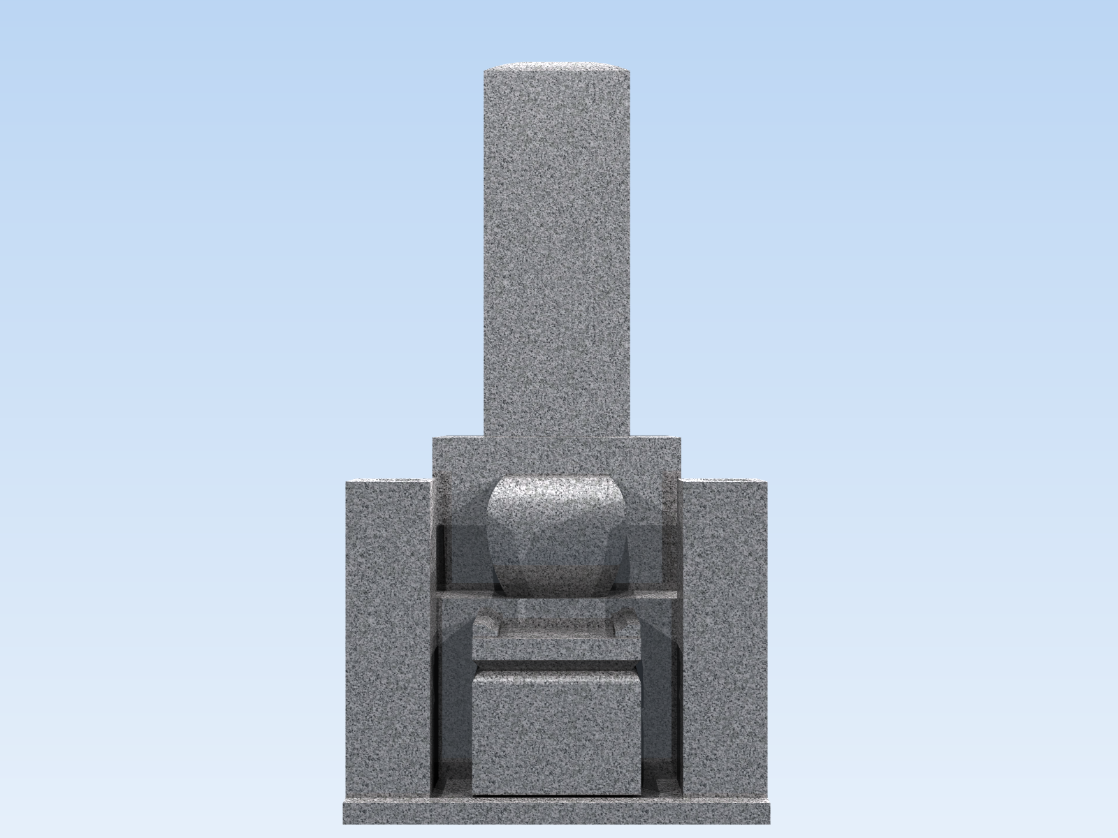 京都型をアレンジした石川石材オリジナルのお墓です。頭の形状は古のかたちである丸陣笠を採用し、 お水入れや線香立てを独立すると共に、香炉の形状・台石の高さ・供物台も大きさを変え、 掃除がしやすく重量感のあるかたちに仕上げております。